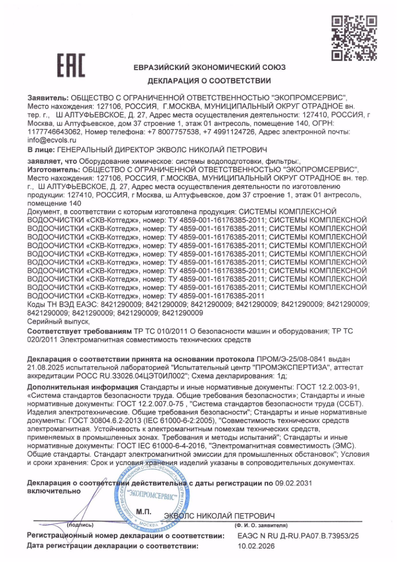 Все системы очистки воды Ecvols застрахованы в